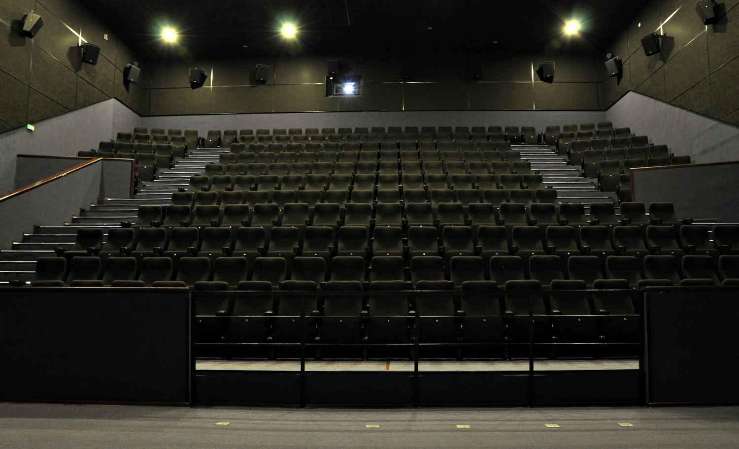 Оснащен системой круговой поляризации, сохраняющей качество картинки под любым углом в формате 3D, современным кинопроекционным и звуковым оборудованием, огромным экраном площадью 200 м².